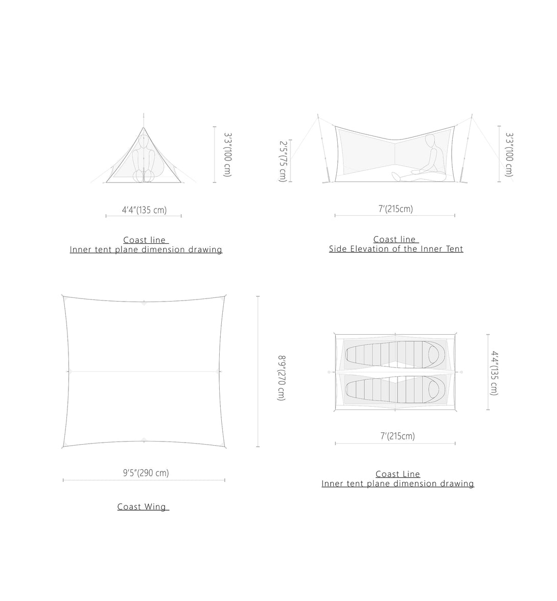 Footprint:20D nylon ripstop PU,205 g (Sold separately).